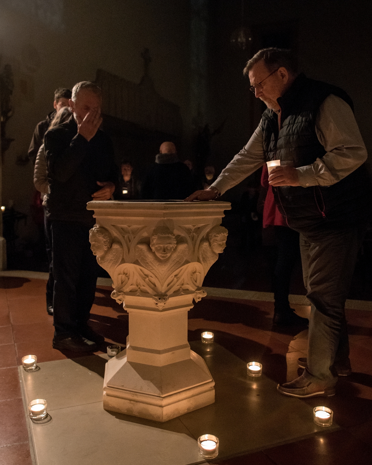 Im Kerzenschein wurde im Geburtszimmer und auf dem Gang davor ein berührendes Morgenlob gefeiert, dem Dr. Franz Haringer, Theologischer Leiter des Geburtshauses, vorstand. Veronika Pittner gestaltete die Feier musikalisch. Anschließend zogen die Gläubigen mit Kerzen zur zweiten Station an die Benediktsäule am Marktplatz und weiter an den Taufstein in die Pfarrkirche St. Oswald. Dort erinnerten sich die Mitfeiernden auch an ihre eigene Taufe.