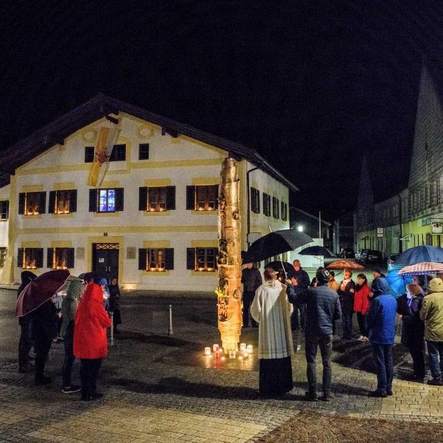 Am 16. April, dem Geburtstag von Papst Benedikt XVI., versammelten sich fast vierzig Gläubige zur Geburtsstunde um 4.15 Uhr in seinem Geburtszimmer. Joseph Ratzinger wurde 1927 in Marktl am Inn geboren. Im Kerzenschein wurde ein eindrucksvolles Morgenlob gefeiert, dem Dr. Franz Haringer vorstand. Er trug zum Thema „Licht“ Ausschnitte aus der Osternachtspredigt 2012 von Benedikt XVI. vor. Die Gruppe „Dreiklang“ gestaltete die Feier musikalisch. Anschließend zogen die Gläubigen mit Kerzen zur zweiten Station an die Benediktsäule am Marktplatz und weiter an den Taufstein in die Pfarrkirche St. Oswald. Dort erinnerten sich die Mitfeiernden auch an ihre eigene Taufe.